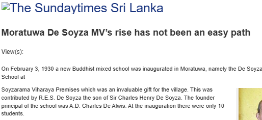 මෙහි දැක්වෙන්නේ පාසලේ නිර්මාතෘ පිළිබද 'The Sunday Times ' පුවත් පතේ කලකට ඉහත දී පළ වූ ලිපියක කොටසකි.